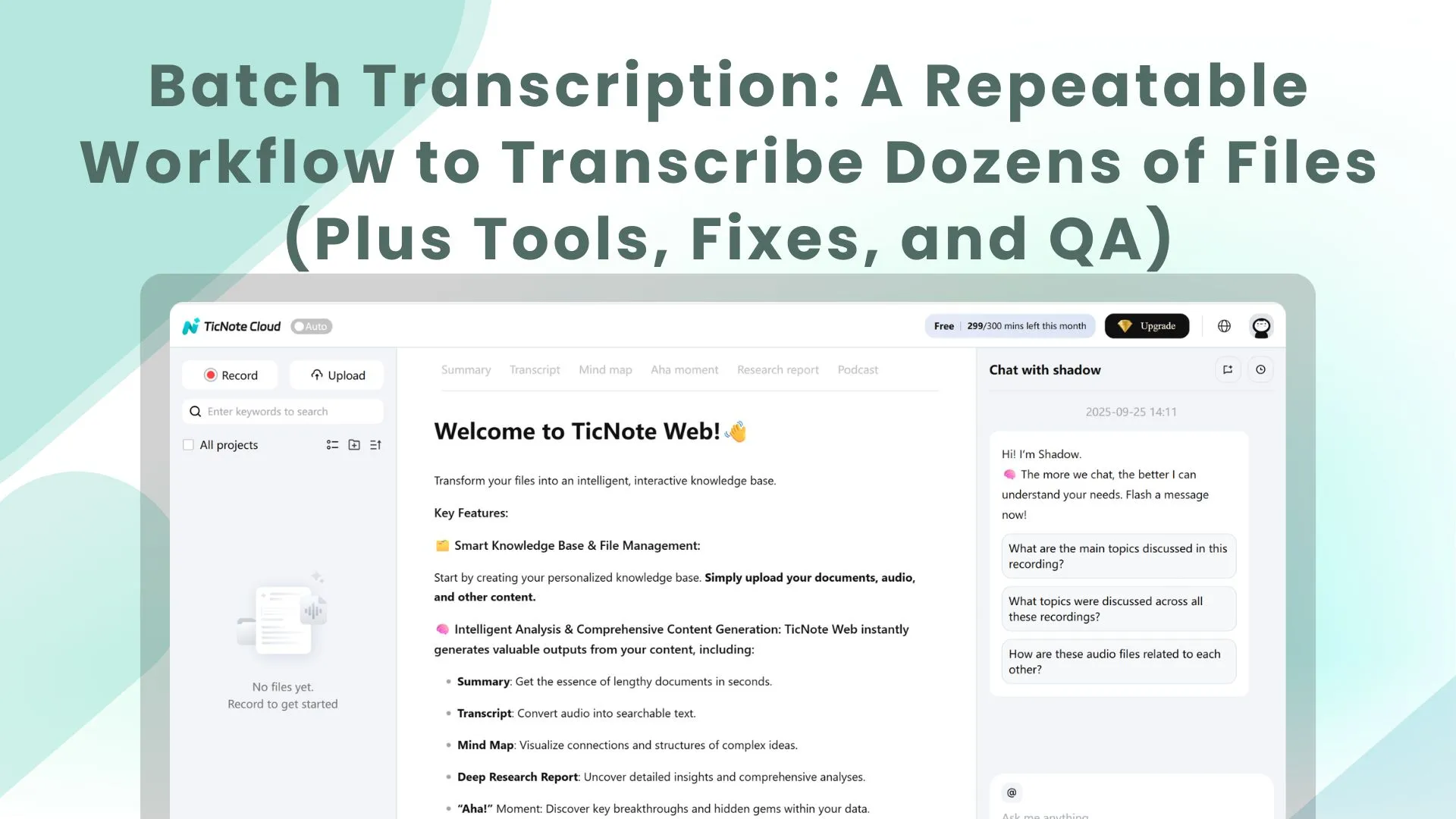 Create a Project in TicNote Cloud and run your next batch in one searchable workspace.