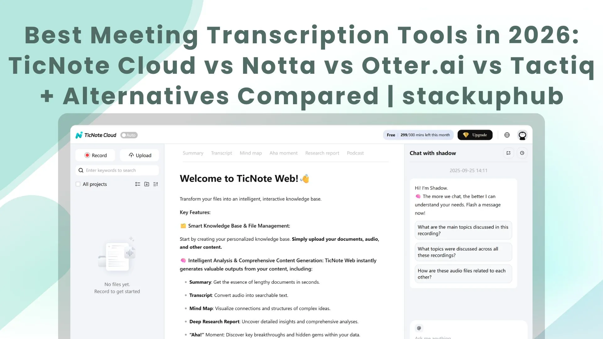 Choose TicNote Cloud if you want meeting transcription plus the “so what”: decisions, evidence, deliverables, and shared context — all in one place.