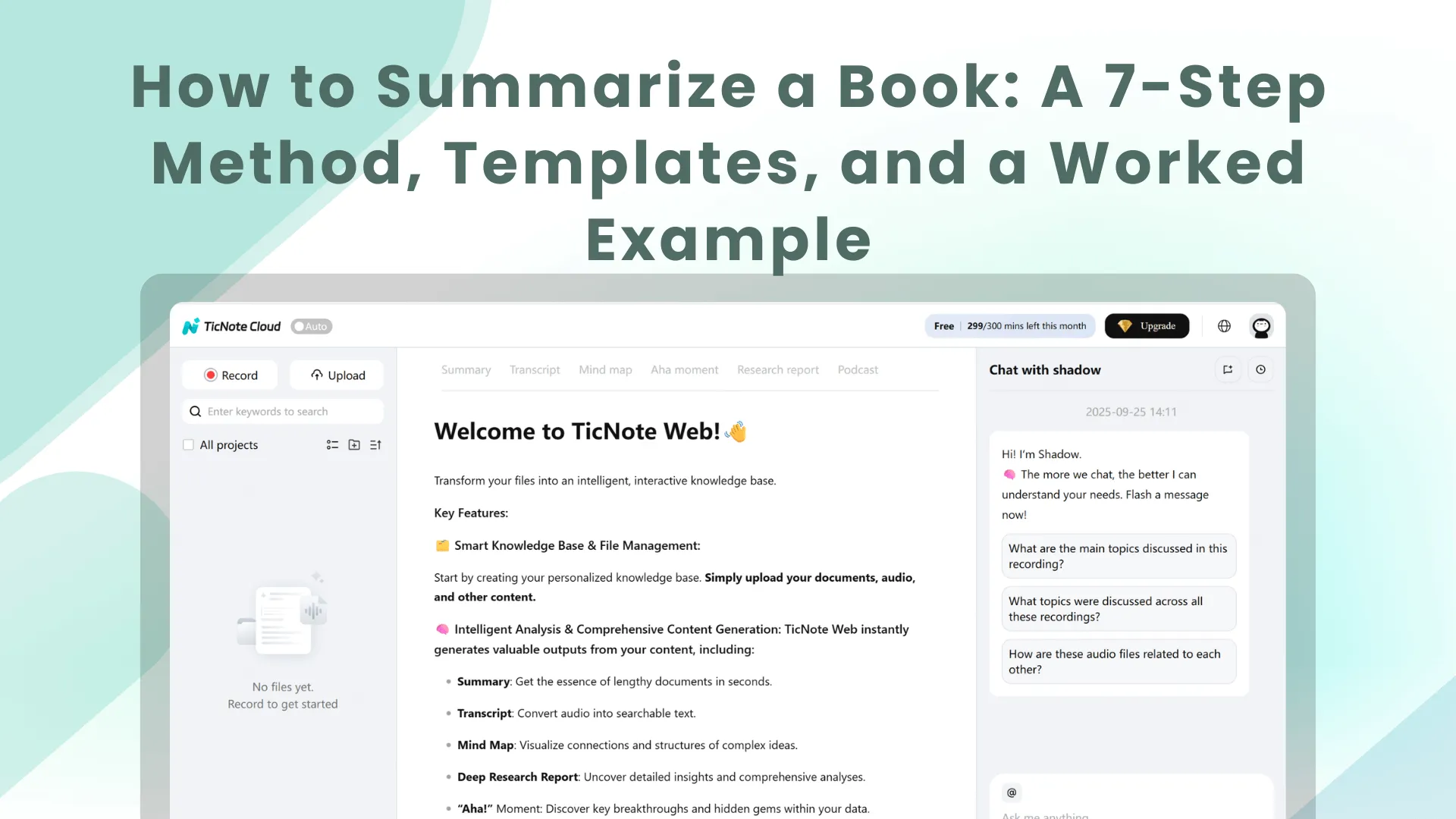If you want a faster, repeatable way to summarize a book, start by collecting clean notes and (optionally) organizing them in TicNote Cloud so your outline and final summary stay grounded.