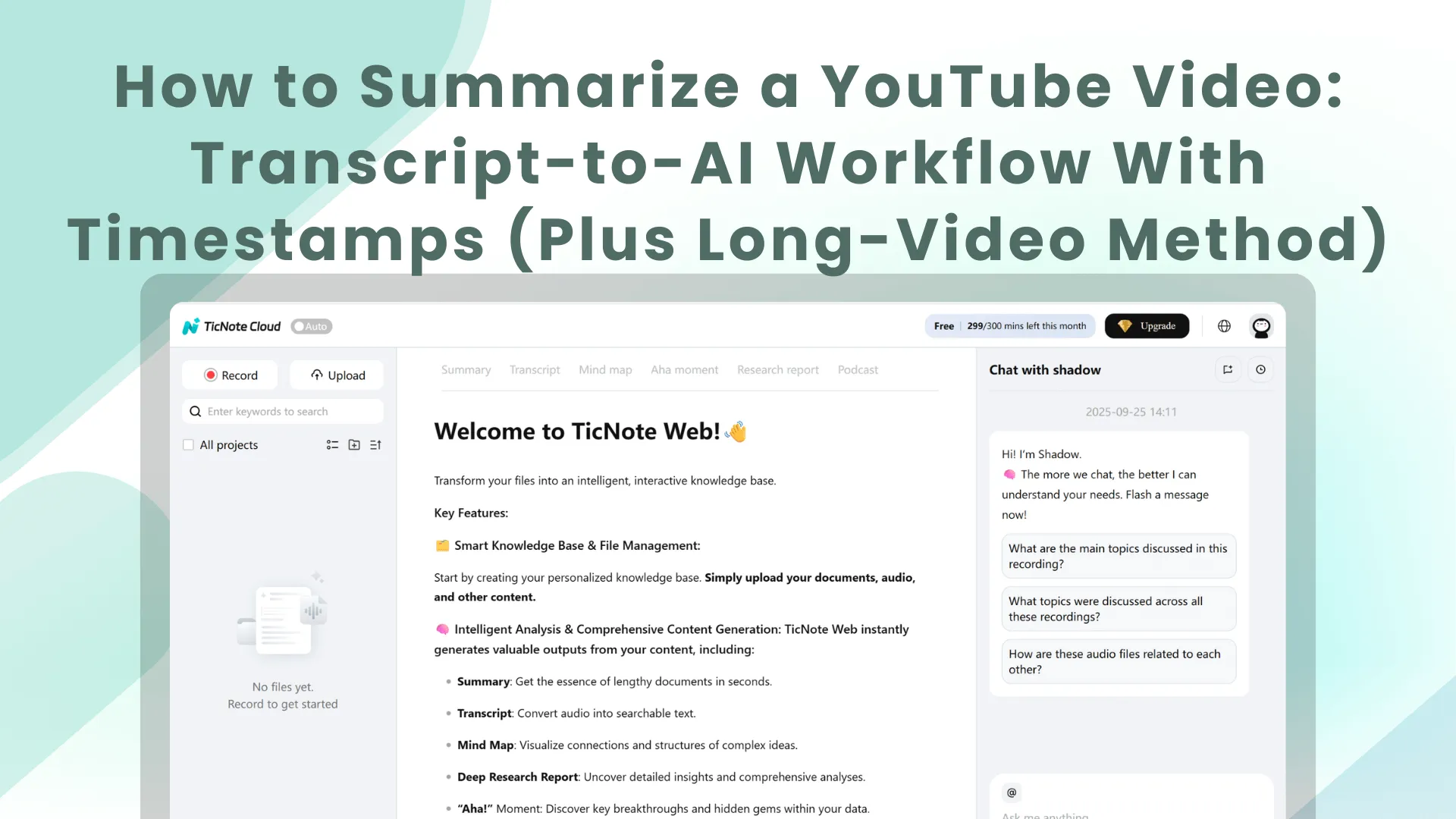 Try TicNote Cloud for Free to save YouTube transcripts and summaries in a searchable workspace.