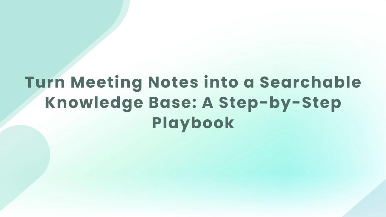 This guide shows how to turn meeting notes into a searchable second brain. You'll build a searchable, reusable meeting notes knowledge base. It includes templates, a pilot-to-rollout plan, and practical adoption tactics.