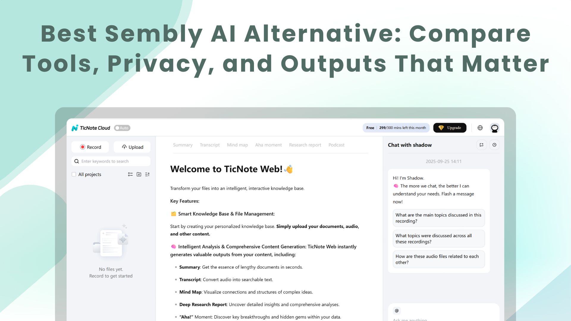If you want the fastest Sembly AI alternative with the most usable outputs, try TicNote Cloud for free to turn meetings into reports, presentations, podcasts, and mind maps.