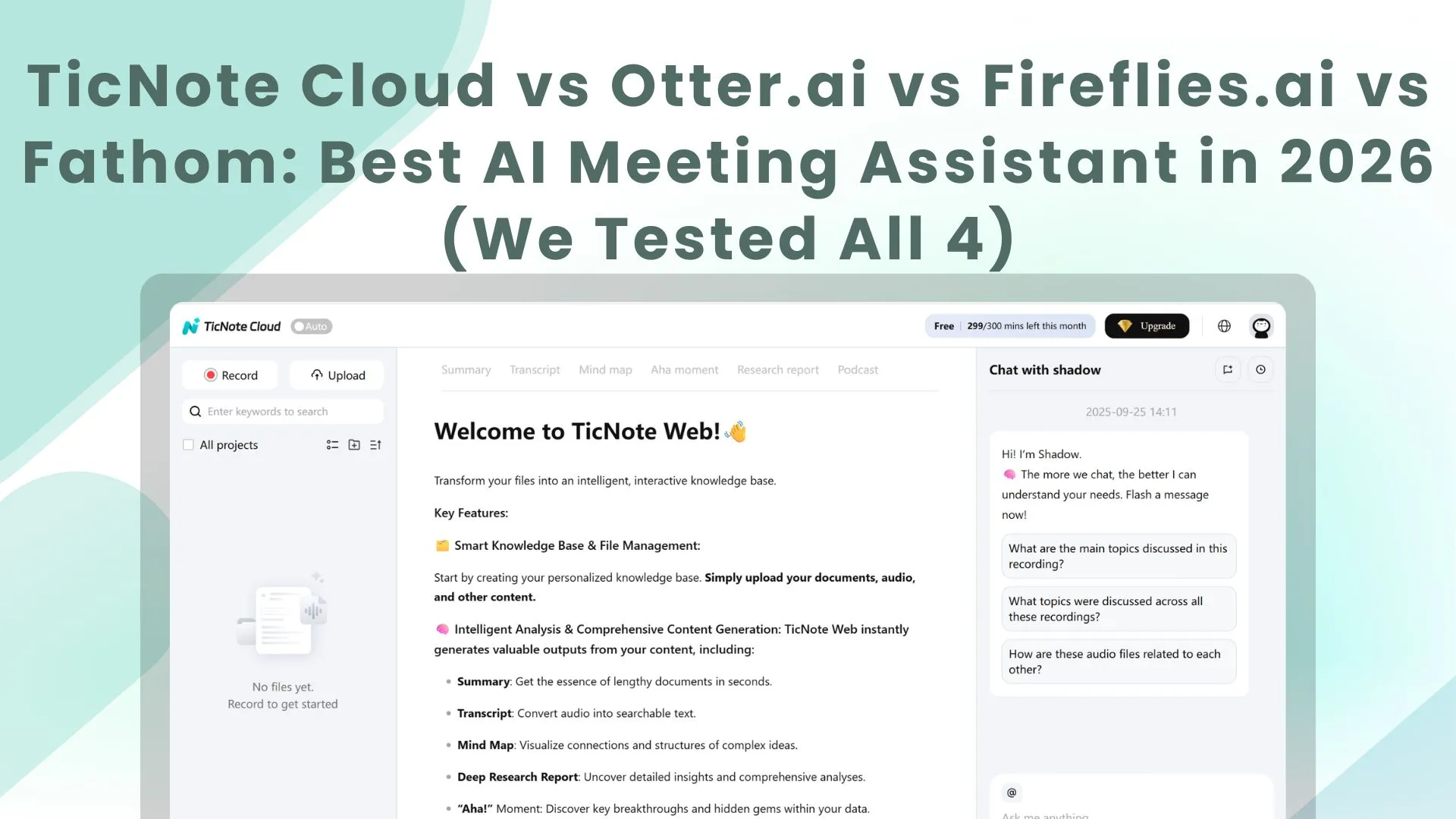 | Feature | TicNote Cloud | Otter.ai | Fireflies.ai | Fathom |